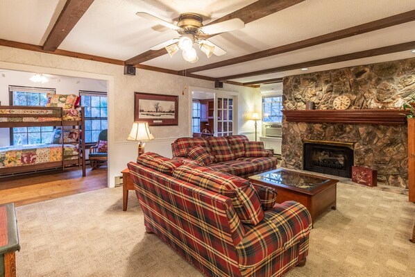 The house was very cozy, just what we were looking for on this trip. The kitchen was spacious and well laid out for our needs. The porches and fire pit were wonderful for relaxing on. The beds were all comfortable as were the couches. The living room provided the perfect area for our family to sit and play board games. My favorite part was being able to hear the river while going to sleep at night. We would definitely visit again.