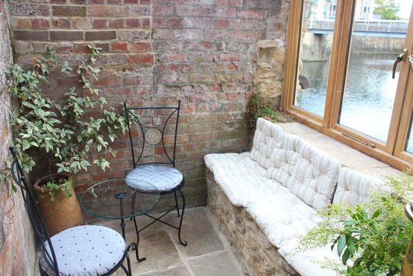 This property is a true gem. What an amazing experience - a waterfront unit in a city is not something one gets to experience often! We had an amazing time and greatly enjoyed our stay. Folly Bridge House is a charming, story-book building tucked away from the main road, so there is sense of privacy unusual in such a central location. Yet Folly Bridge House is within easy walking distance of the city center and the University’s main attractions. The caretaking staff are courteous.and helpful, and all our interactions were positive ones. This particular unit is fantastic. Although a basement unit, it is bright and airy. The conservatory is a fantastic place to sit rain or shine. I spent several hours reading while watching the Themes go by and listening to the rain patter on the glass. As the Themes is right outside the door, Ducks, geese, and even the occasional swan would come by looking for food. We picked up some folding chairs and would sit out on the dock, reading and enjoying being on the water. There are only two downsides I think worth mentioning. First, the outdoor steps leading down to the unit can need careful navigation in the dark, but their is an interior entrance as well. Second, as mentioned on the Folly Bridge House website, the bathroom is quite small. However, we found the small size much less of an issue than expected. The water pressure is great and the water is not hard (mineral heavy). We loved our stay and look forward to returning!
