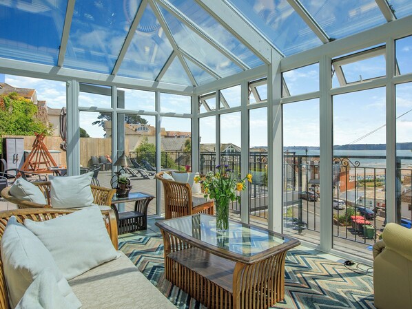 7 Roundham Heights ist das Penthouse in der obersten Etage mit Aufzug. Vom Wohnzimmer, dem Hauptschlafzimmer, dem Wintergarten und der großen Dachterrasse aus haben Sie einen spektakulären Blick. Die Wohnung verfügt über einen eigenen Eingang im zweiten Stock sowie einen ausgewiesenen Parkplatz vor dem Grundstück. Kostenloses WLAN ist ebenfalls verfügbar.