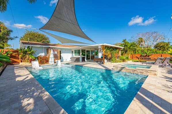 Privater Pool, zwei Schlafzimmer, 1 1/2 Bäder, 5 Personen.