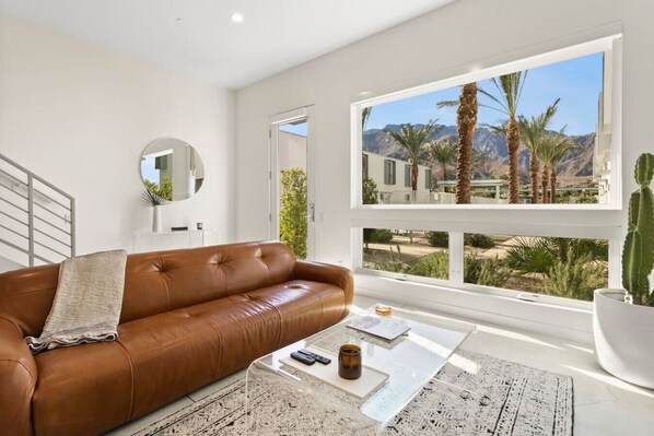Enjoy the luxury of our modern 2-story townhouse, featuring an open concept living room, three light-filled bedrooms, and a private backyard for outdoor dining. Bright and airy, this spacious unit overlooks the desert-inspired landscaping of the pool area, featuring unobstructed views of the San Jacinto Mountains from both levels. Enjoy all the modern amenities of home, while taking in several stylized nods to Palm Springs` colorful history. Our sleek, modern oasis is all yours to enjoy!
