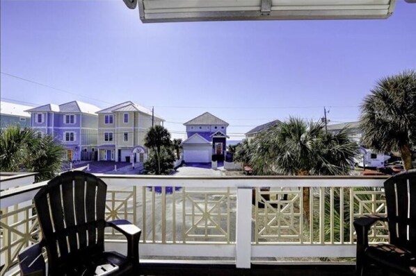 As you step out onto the balcony, you're greeted with a breathtaking breeze of the Gulf of Mexico. The sea stretches out before you, a vast expanse of blue and green that fills your heart with joy and wonder.