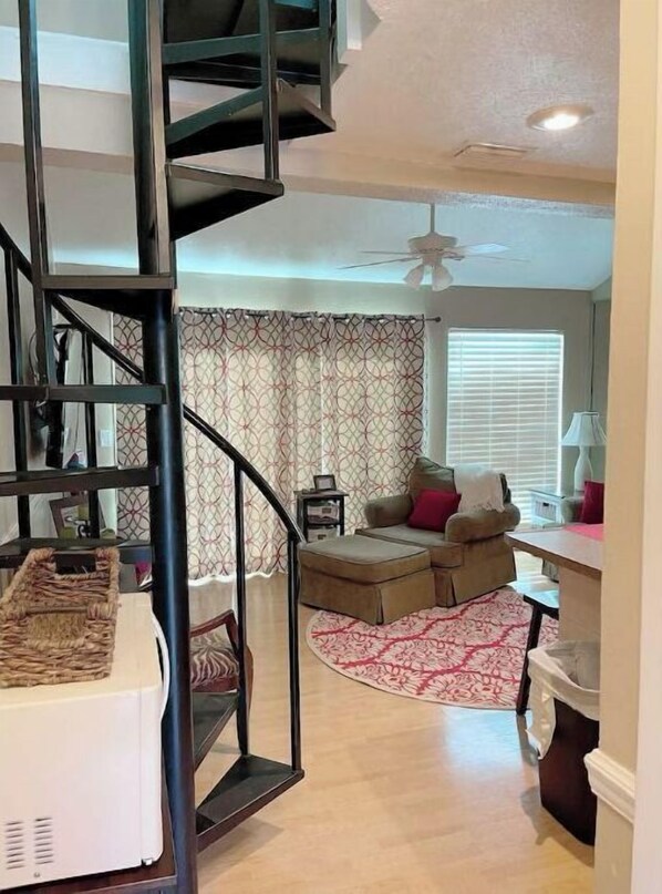 We do have a security camera at the entry door of the condo. The space Condo is beach front and balcony over looks the beach. Main floor has the Master bedroom, 1 bath, kitchen, living room, and washer/dryer. There is a loft that has a full and twin bed with a spiral stair case. Guest access Guest have access to main floor of the unit & loft, unit balcony, private beach access, and pool area which includes grills and public restrooms for the guests/owners of Nautical Watch. Other things to note Once you enter the unit, you will be so relaxed that you will leave all the other life stuff at the door. Have a great time and enjoy your time in our home away from home.