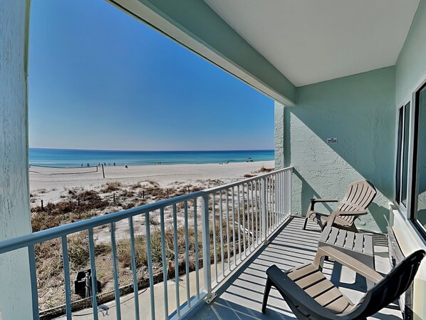 Welcome to Gulf Coast convenience at Continental #220, a charming second-floor condo located in Panama City Beach, Florida. This one-bedroom, one-bath retreat comfortably accommodates up to four guests and is just steps from the sugar-white sand and emerald-green waters of the Gulf of Mexico. Bright and airy with tropical-inspired décor, this condo features stunning Gulf views and a furnished private balcony where you can relax with morning coffee or toast to the sunset.