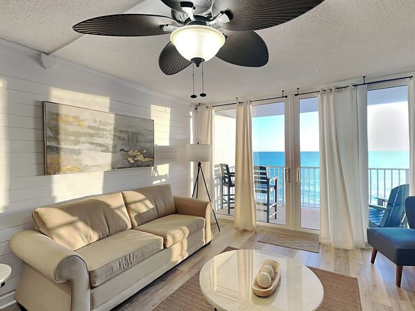 Welcome to Edgewater Leeward #605, a Gulf-front condo in Panama City Beach, Florida, offering a relaxing retreat with unbeatable views and complimentary beach chair and umbrella service (March through October). Located within the premier Edgewater Beach and Golf Resort, this one-bedroom, two-bathroom condo sleeps four and features direct beach access, a new front-loading washer/dryer, and all the comforts of home.