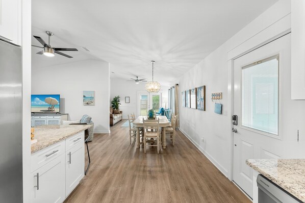 Spacious & Comfortable Living: Thoughtfully designed for relaxation, with an open-concept layout perfect for gathering and unwinding after a day at the beach. Cozy, beach-inspired décor with plenty of natural light.