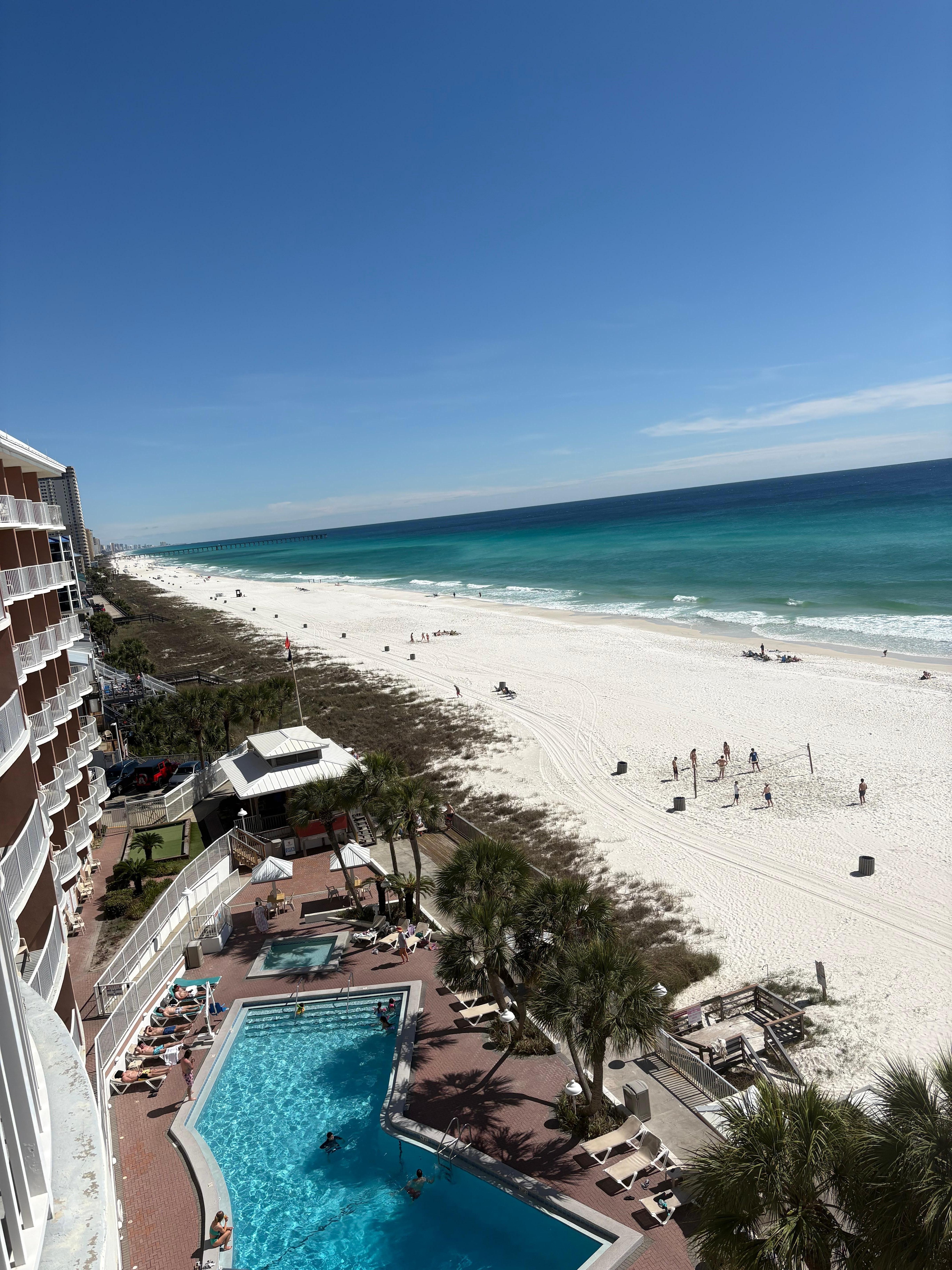 We loved our stay. The only thing lacking was that the dispensers in bath were empty (we had brought some of our own so no worries). We were on the end on 6th floor and our view facing the beach and the sound of the ocean were spectacular. Room was clean and spacious. Hotel was quiet and we had no issues.