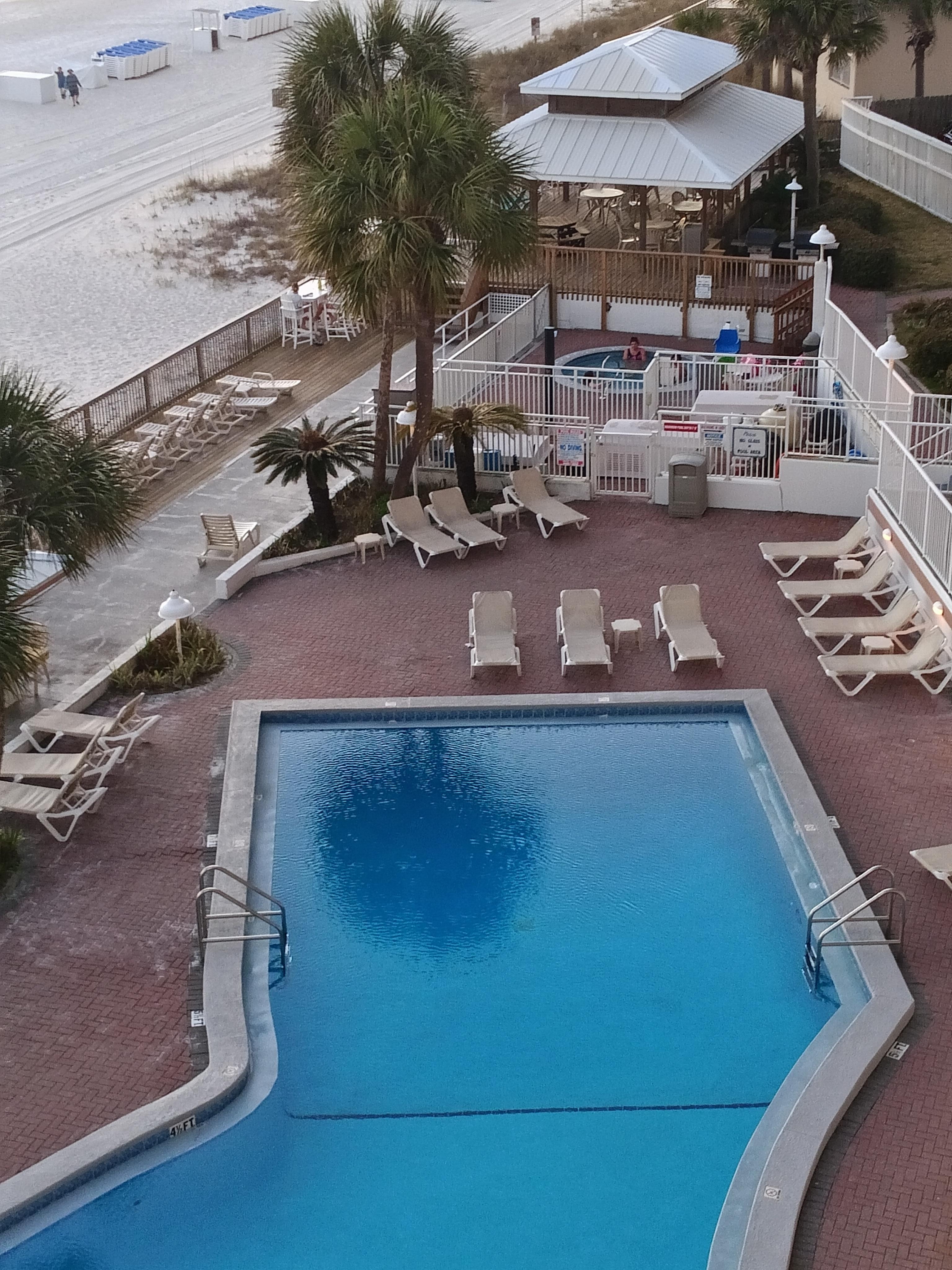 Our room was overlooking the beach. It was so beautiful to sit out on our balcony each morning with our cup of coffee. The kitchen unit we had afforded us everything we needed. The full size refrigerator, stove and oven, coffee maker, toaster, and microwave made making our own meals easy.. The staff was absolutely fabulous! The only drawback was using a beach lounge chair until being told that we had to rent them. In my humble opinion, they should be available for use for any paying hotel guest. But plenty of loungers by the pool were sufficient. Also, we were travelling with a disabled person who could not get down to the beach, as there were only stairs. I would definitely stay here again. Very family, friendly, and somewhat removed from the busier part of the strip along the beach.