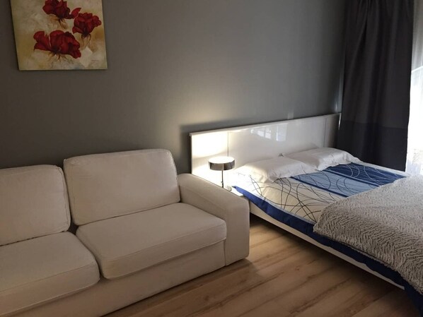In der Küche können Sie sich Ihre eigenen Mahlzeiten zubereiten: einen Kühlschrank mit Gefrierfach, eine Mikrowelle, Kochplatten, einen Toaster und grundlegende Utensilien wie Gewürze und Besteck. Sie werden auch mit allen grundlegenden Annehmlichkeiten ausgestattet, die Sie während Ihres Aufenthalts benötigen: Seife, Shampoo, Hand- und Badetücher, Haartrockner, saubere Bettwäsche und vieles mehr, wenn Sie spezielle Wünsche haben.