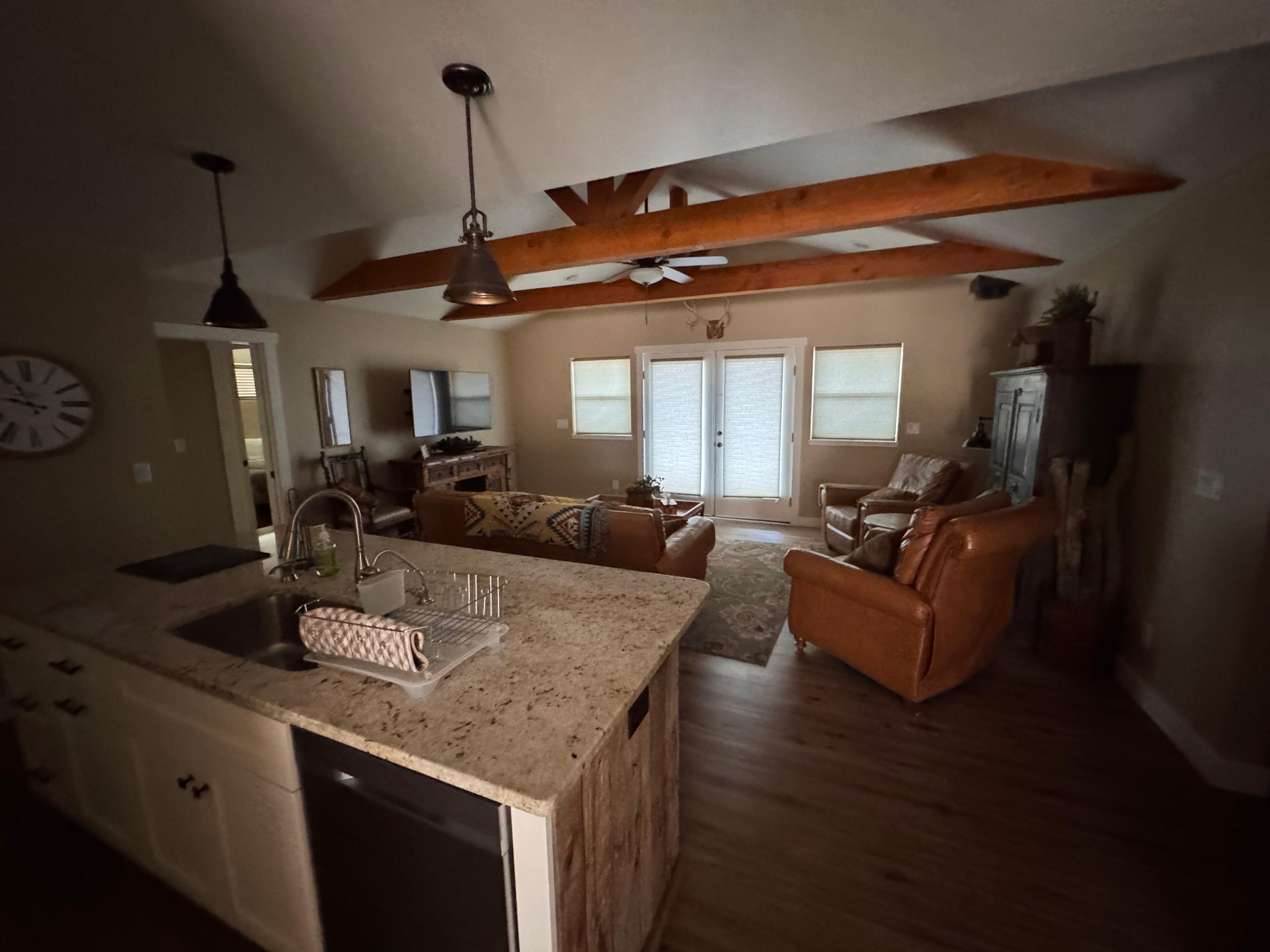 With plenty of space for all 3 generations. Nana and Pop Pop claimed the comfy Livingroom recliners. Mom and Dad spread out with the kiddos downstairs. Everything we needed to do absolutely nothing was there. We made delicious meals in the fully equipped kitchen while the kids did crafts with Pop Pop on the huge family friendly table. We watched everything from football to "Dory"(for the 100th time) on both greatT.V.s. We are already looking at the calendar to re-book. Thanks Doug!