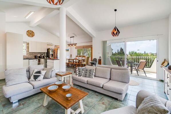 The Villa is tucked away in a quiet cool de sac in lower Peyia in the Coral Bay Area. The buzzing Coral Bay strip offers great options for wining and dining and is a short 5-minute drive from the villa, as are the famous Coral Bay and Laouru beaches. The Bridge Villa is an excellent choice for holidayers who want to have a relaxing holiday in quiet, lush surroundings whilst being close to all the amenities one may need.