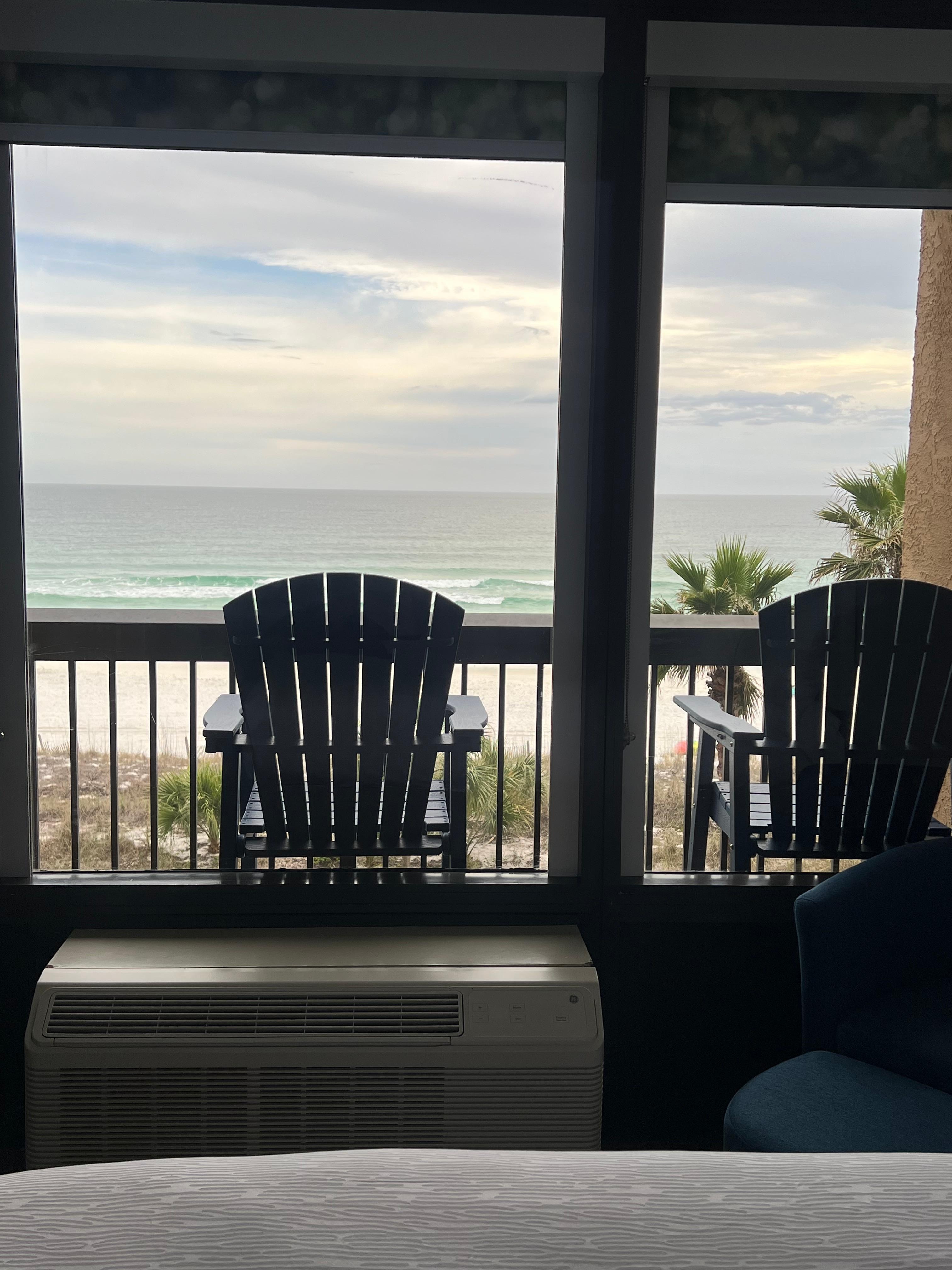 The view was nice overlooking the beach, but the door barely closed unless you slammed it. One thing i was not aware was they required payment to parl each day even though the parking lot was a normal lot nearxmy building as was not well maintained. To charge fir parking in their parking lot is absurd.