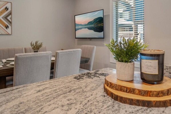 The dining room table seats 6 and the kitchen counter bar adds extra seating with 3 bar stools. The kitchen is large with newer appliances elevating your cooking experience and making it the perfect place to gather and connect with loved ones.