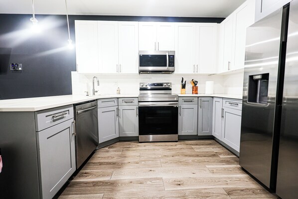 Our fully-equipped kitchen is a culinary haven, featuring modern appliances and ample counter space. Whether you're a master chef or just want to whip up a quick meal, this kitchen has everything you need for an enjoyable cooking experience.