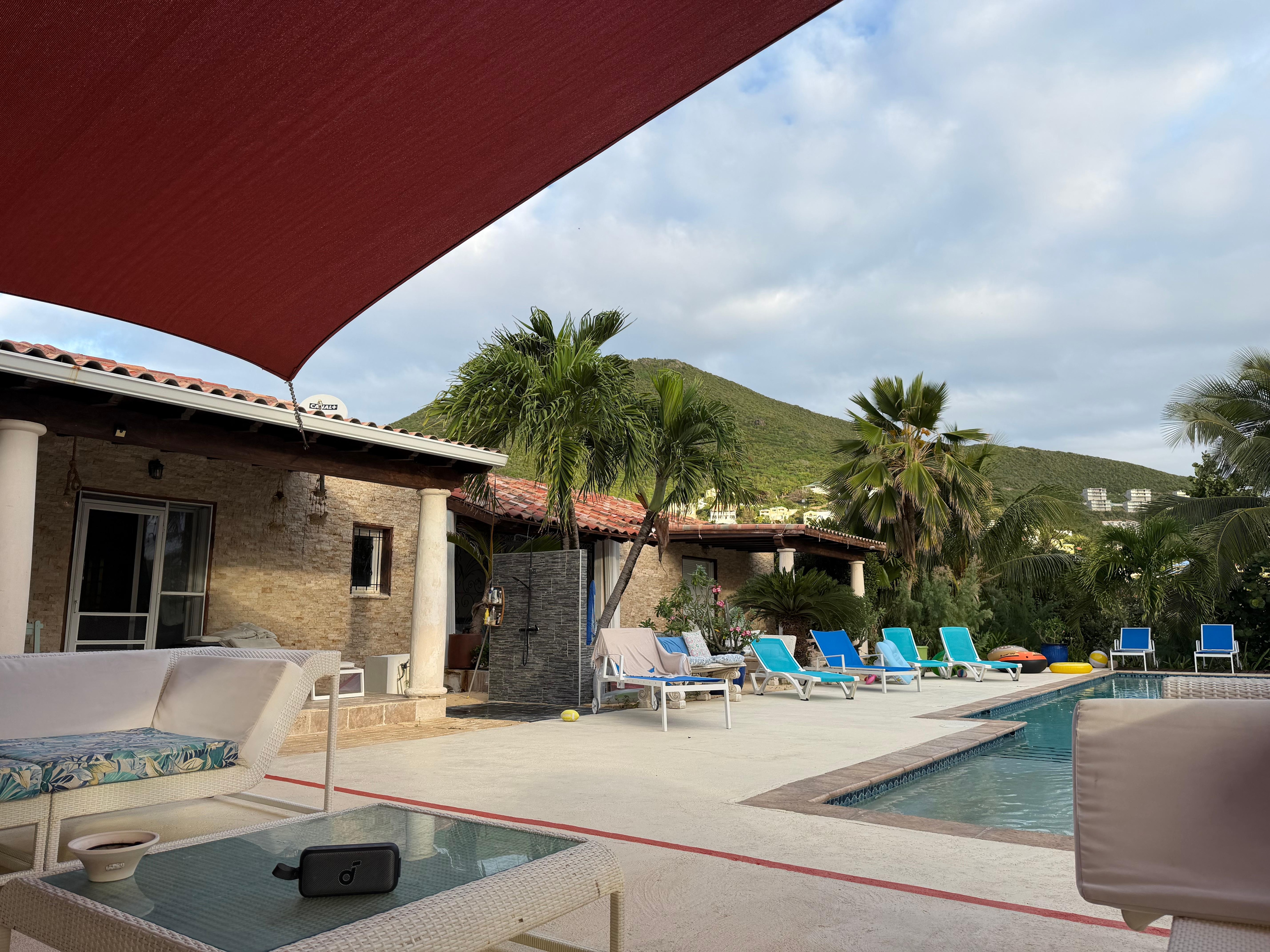 • Schöne Terrasse am Pool mit Tisch für 12 Personen
