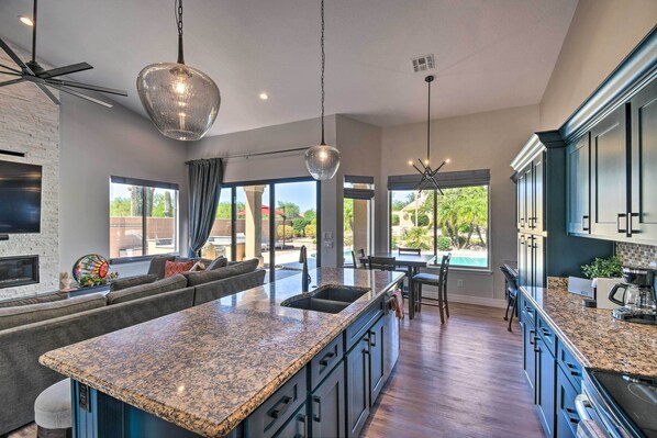 With modern living space, plenty of natural sunlight, a sleek kitchen, Smart TVs in each bedroom, and a fantastic backyard, this guest-ready Scottsdale home boasts all the comforts you’ll need for a fun-filled family golf trip or group get-together.