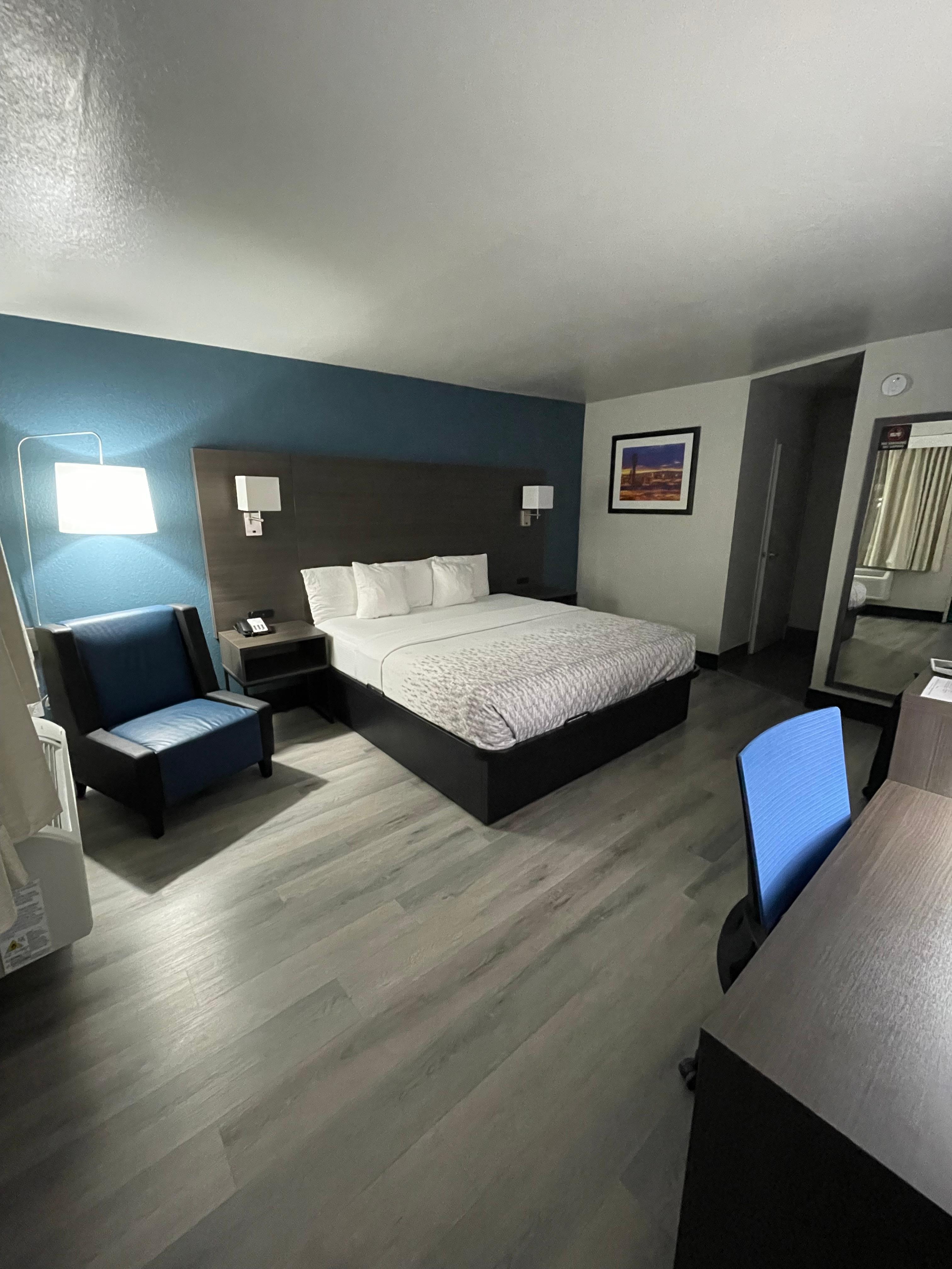 The neighborhood was sketchy to say the least. We only needed a one night stay because of an early flight. After the interaction with the man working behind the counter and based solely on this hotel surroundings, we went down the street to the Hilton Garden Inn where we were greeted with kindness and warmth, even without a reservation, letting us check in before their check-in time.