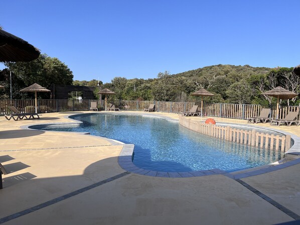 Chalet 'Tout Confort 4min Plage' mit Gemeinschaftspool, privater Terrasse und Klimaanlage