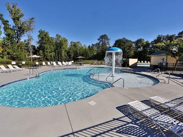 Das Resort bietet einen beheizten Innenpool, einen zweiten Außenpool, einen Whirlpool für 17 Personen, einen Kinderpool, einen Basketballplatz, Hufeisengruben, Grillplätze mit Picknickplätzen und 2 Spielanlagen für die Kinder, die alle nur wenige Schritte von der Wohnung entfernt sind. Mountain View Getaway befindet sich im Gebäude 3 im Erdgeschoss. Wie in den Bildern gezeigt, ist das Gebäude 3 den Annehmlichkeiten des Resorts am nächsten.