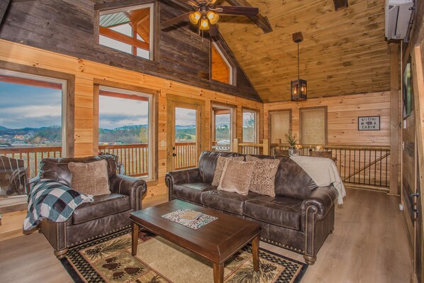 Beautiful mountain views, romantic setting and minutes from downtown Pigeon Forge and Gatlinburg. Perfect for couples, small families, anniversaries and the ideal romantic honeymoon cabin. The cabin can sleep up to 4 comfortably. There is a King bed on the main level with a queen pull out couch in the living room. The cabin is equipped with high-speed wireless internet, RoKu TV, a private deck, a hot tub, and your very own private indoor heated pool. The living room and bedroom have flat-screen smart TV's and a cozy fireplace! Reserve now, for this highly sought after cabin will not be available for long!
