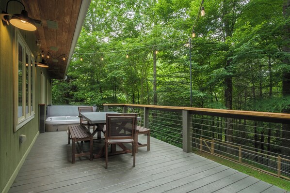 The outdoor spaces at Hidden Valley Cottage are hard to beat! The yard is fully fenced. Enjoy your morning coffee from a chair on the back deck deck, grill out after a day of adventures, or soak in the hot tub at the end of the day.