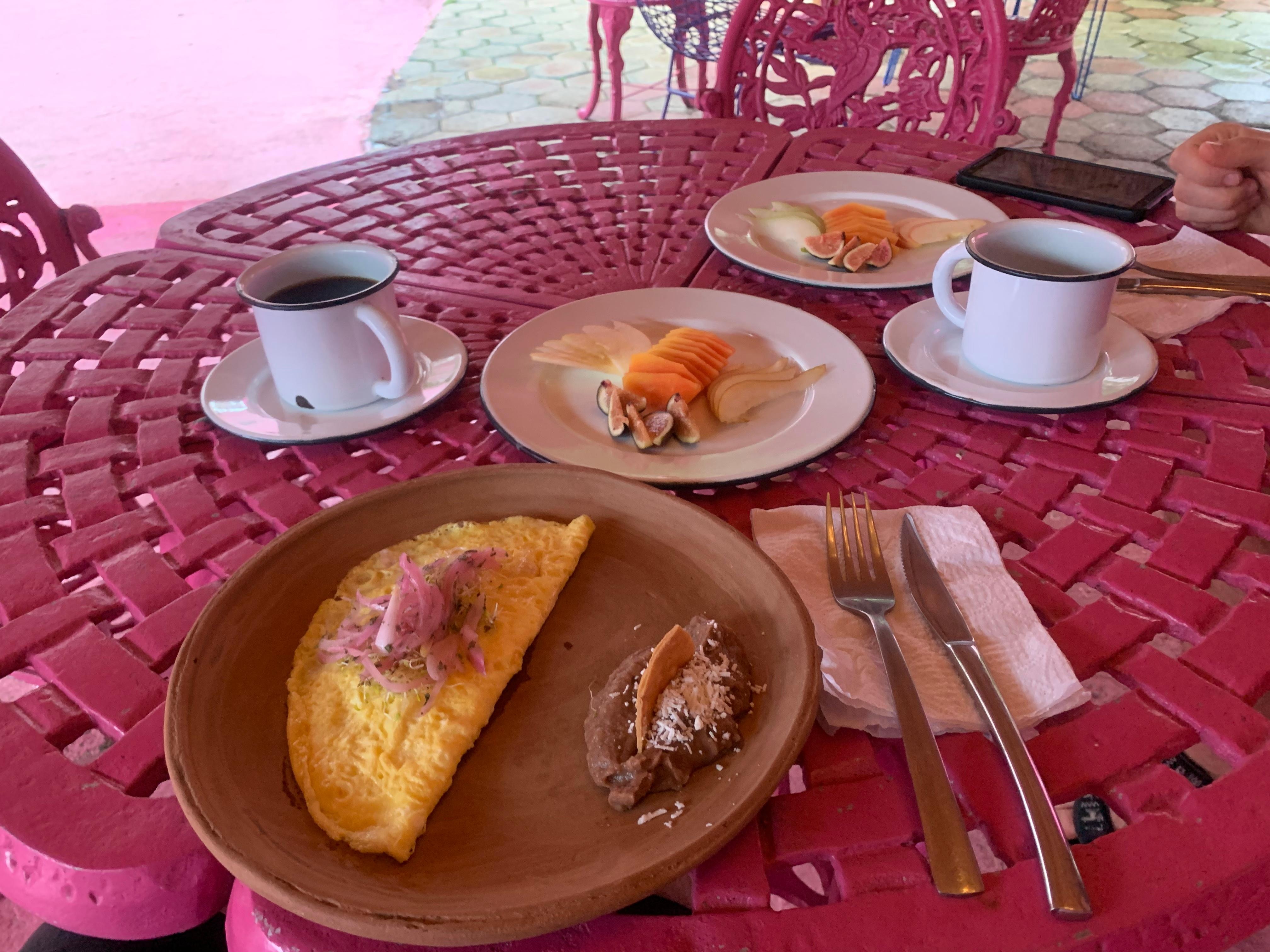 Santuario Playa ist wirklich eine coole Location. Außergewöhnlich ist schon der erste Eindruck… Gebäude und Innenhof alles in mexikanischem Altrosa, was auch gut zur Deko passt.