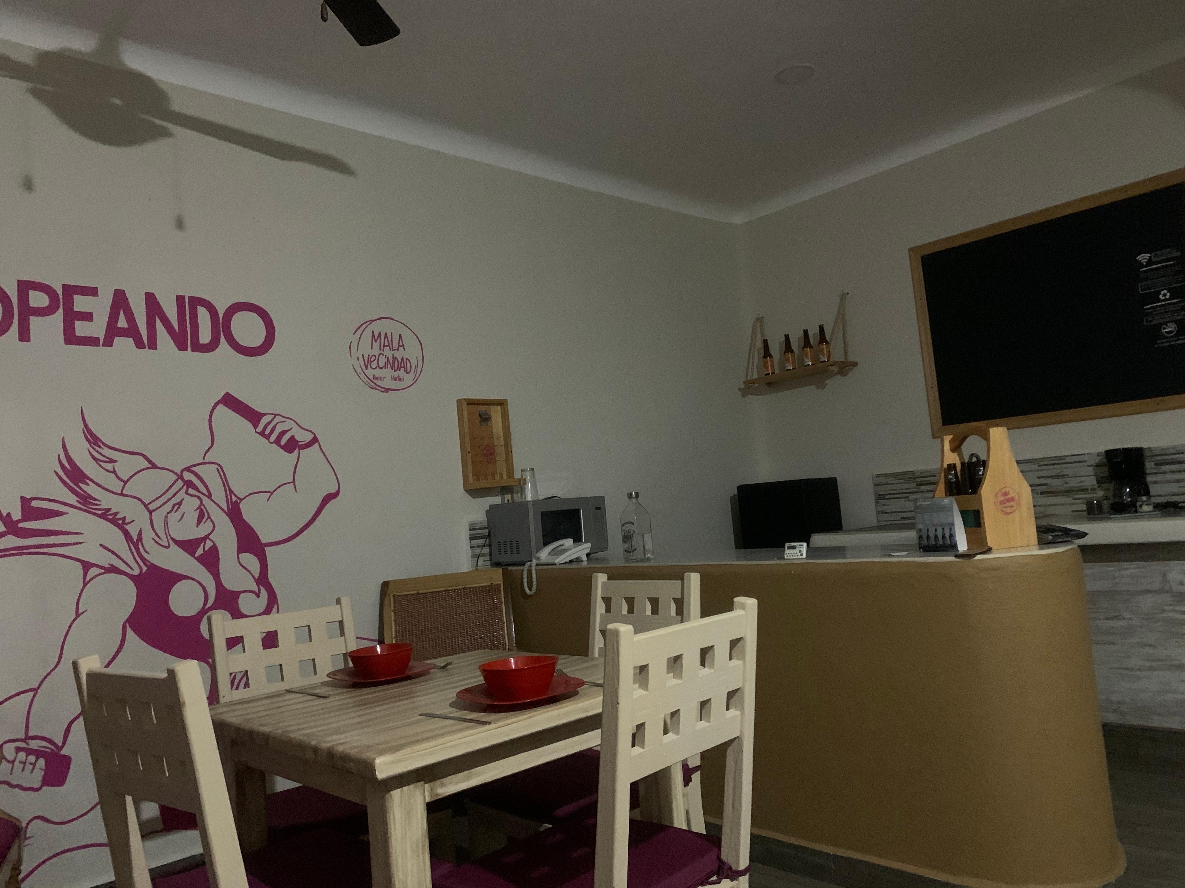 Die Umgebung ist auch sehr gut. Gleich rechts neben dem Hotel ein Oxxo, wo man Getränke und Kleinigkeiten kaufen kann, eine Straße weiter ein paar coole Bars mit Life Musik und um die Ecke schon die 5ta Avenida, die Fußgängerzone.