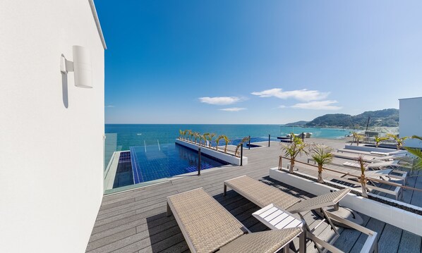 Pension in Strandlage mit saisonal geöffnetem Außenpool und einem weißen Sandstrand