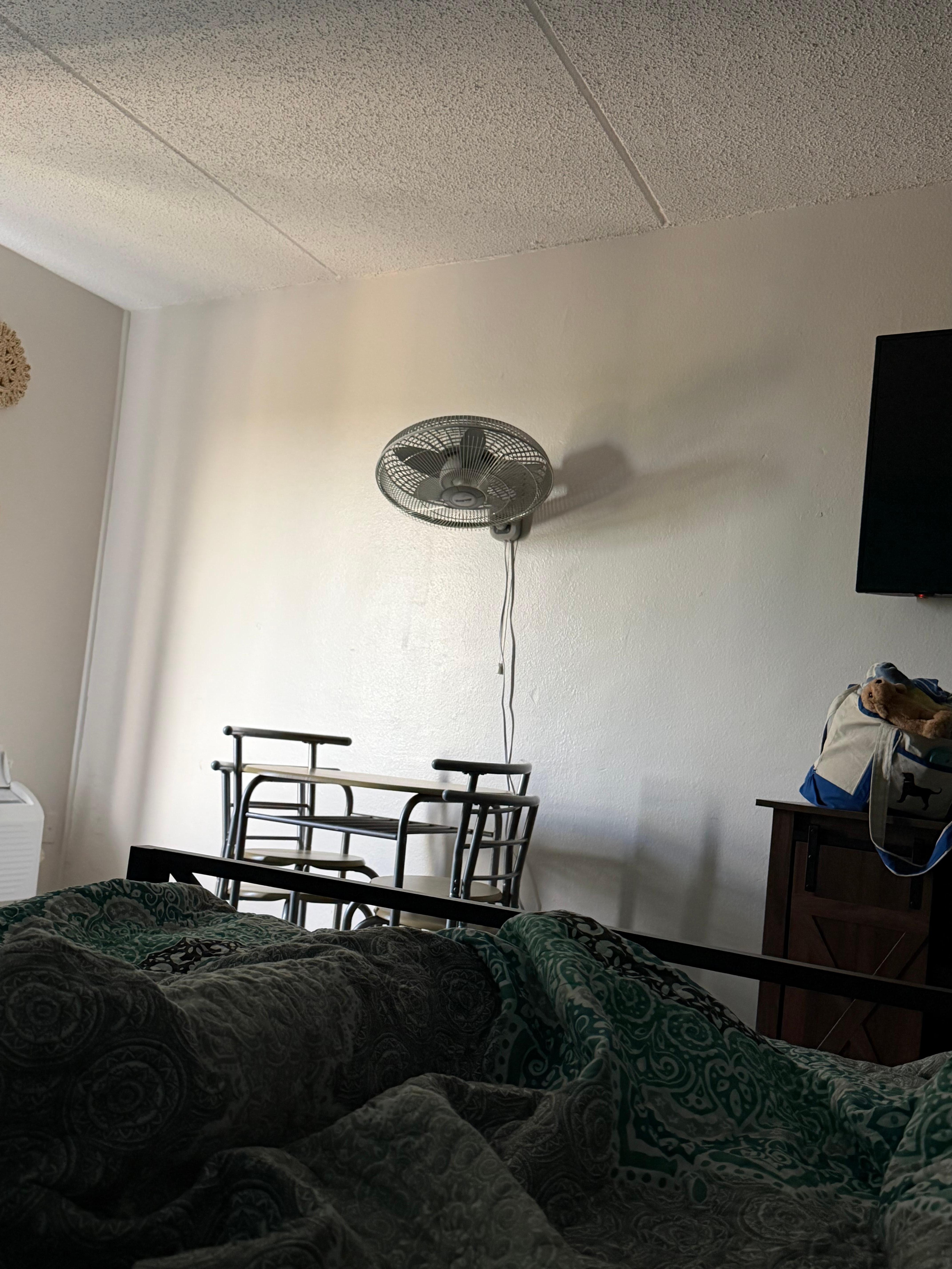 Entered bathroom toilet seat up with unflushed urine in the bowl and on floor !! Did report this to desk and he made his wife come n clean it !! 😳Non working room fan n if did work no outlet to plug in! Room ac shut off at 3 am woke up in a sweat .. Sheets looked like had been washed with ink pen ink all over pillow cases we slept on top with our beach towels we brought Pool had music so loud and staticicky couldn’t stand to even swim