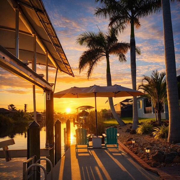 WATERFRONT BOATING AMENITIES: -Private Dock with Electric and Water Hookups -Boat Lift Access (with approval by owner and an additional fee) -Fish Cleaning Sink/Prep Station -3 Kayaks and 3 Life Jackets -Waterfront Lighting for Ambiance and Safety -Fishing Poles, Net and Basic Tackle Kit