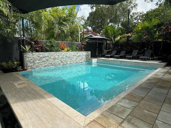 This house really exceeded all of my expectations. Our group included 5 adults and 3 kids (6, 4 and 2). The separate (yet attached) self contained unit was amazing for grand parents. The location is right next to the beach, close to a park for kids and a short drive into Port Douglas. You’d need a car to get to town. The house was clean, fully equipped and provided linen and towels. There was also room for our caravan in one of the two driveways. The pool was easy to get in and out of with little kids who loved swimming everyday. There’s a laundry and outside toilet as well. Highly recommend. Will definitely be back!