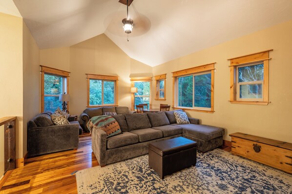 Your immediate surroundings include peaceful woods and a winding creek that comes right by the property. It's a nice place to take your dogs for a walk - they're welcome. To the south lies central Port Orford, with restaurants, art galleries, and a unique dolly port where you can watch the ships travel back and forth. You'll find easy beach access near the Visitor Center in town, as well as at Paradise Point directly to the west. The home even features two RV hook-up pads, so you'll be able to explore the region with ease.