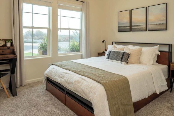 Step inside and discover a spacious haven featuring high-speed wifi, dedicated desk space, and a convenient printer, ensuring that your professional needs are met seamlessly. The memory foam mattresses and blackout curtains are designed to provide a tranquil and rejuvenating sleep, setting the stage for a productive day ahead.
