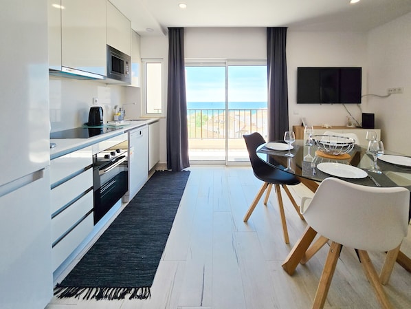 Dieses Apartment am Wasser bietet eine Küche und einen möblierten Balkon