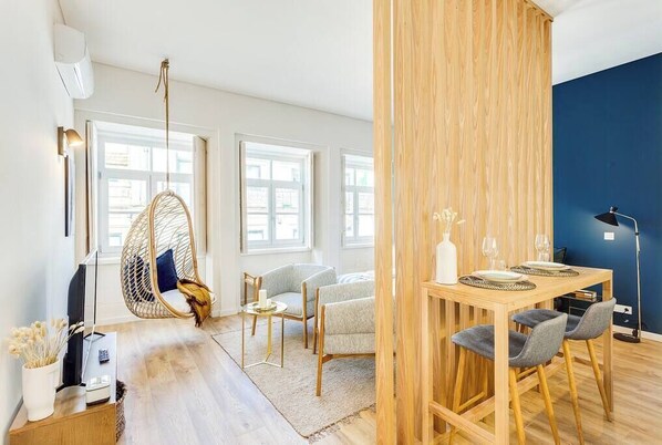 Fabulous new Studio (35m2), very nicely decorated in a recently renovated building, located in the downtown area, right by Praça da República and Cedofeita street. It is located on the 2nd floor and has elevator access. It has Air Conditioning, modern kitchen and bathroom facilities and a very cozy bed :)! It is equipped with all the essentials so you can have a great stay with us.