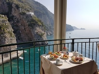 There is a direct connection to the sea promenade located some stairs below, where you can walk to a small but nice beach and to some other restaurants.