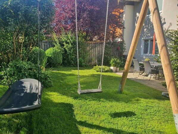 Ein herzliches Grüß Gott aus Prien am Chiemsee!Die Ferienwohnung wird seit Mai 2021 angeboten. Wir Betreiber der Ferienwohnung BaMBi freuenuns, dass Sie sich näher dafür interessieren. BaMBi steht für: Barrierearm, Mittendrin, Biologisch. DieFerienwohnung ist Teil eines seit 2011 bestehenden sehr hochwertig ausgestatteten Wohnprojekts,das für seine Vielfalt, Nachhaltigkeit und Energieeffizienz als Leuchtturmprojekt ausgezeichnet wurde.Lage:Aufgrund ihrer Lage im Ort (400 m vom Bahnhof, 500 m vom Zentrum) eignet sie sich sehr gut für dieAnreise per Bahn und/oder Fahrrad und auch für längere Aufenthalte. Die Wohnung liegt ruhig undtrotzdem zentral im Ort, in gewachsener Umgebung mit altem Bau- und Baumbestand. Leicht kommtman ohne Barrieren in den nahe gelegenen Ortskern: lebendig, teilweise urban und mit allenAngeboten für einen angenehmen Aufenthalt bei unterschiedlichen Bedürfnissen. Der Bahnhof undBusbahnhof oder die Haltestelle für die historische Chiemsee-Bahn zum See sind bequem in 5Gehminuten zu erreichen. In unmittelbarer Nachbarschaft zur Wohnung befinden sich eine Bäckerei,ein Metzger, ein Gemüseladen, ein Lebensmitteldiscounter, mehrere Arztpraxen und einFahrradgeschäft mit Ausleihangebot. Wenige Schritte weiter liegen Apotheken, die Bücherei, das Kino,die Museen, Cafés, Bars und Restaurants, diverse Fachgeschäfte, Banken, die Post, das Tourismusbüround die Gotteshäuser verschiedener Konfessionen. Das kostenfreie Schraml-Strandbad und der SkiundSchlittenberg sind fußläufig erreichbar. Richtung Osten führt ein ruhiger, gut begeh- und "befahrbarer" Fußweg zum See. Hier erschließensich nach einem kleinen Spaziergang in wunderbarer Natur gelegene Aussichtspunkte miteinzigartigem Blick auf den See und die Chiemgauer Berge. Von dort gelangt man direkt auf ein sehrgut ausgebautes Fuß- und Radwegenetz in Naturschutzgebiete am nördlichen oder südlichenChiemsee-Uferweg. Wer es geschäftiger liebt, geht zum touristischen Ortsteil Stock. Stock bietet sichan, um die ganzjährig lebendige Uferpromenade, die Scheren, mit Cafés und Restaurants oder dasmoderne Schwimmbad mit Sauna und Strandbad zu genießen. Dort gibt es mehrere Verleihstationenfür Elektro-, Tret-, und Ruderboote. Am danebengelegenen Hafen fahren die Schiffe zu den berühmtenInseln ab.Der Bahnhof Prien ist mit häufigen Verbindungen sehr gut an die Städte Rosenheim, München,Salzburg oder Innsbruck angebunden. Die Chiemgau-Bahn bringt Sie nach Aschau im Chiemgau zuunseren Hausbergen (Kampenwand, Geigelstein) oder ins Sachranger Tal. RegelmäßigeBusverbindungen eröffnen Ihnen Zugang für herrliche Tagesausflüge bis nach Reit im Winkel.Menschen mit Handicap sind herzlich willkommen. Die Ferienwohnung ist Barrierearm, aber nicht barrierefrei. Gerne sprechen wir mit Ihnen vor einer Buchung über die individuellen Angebote und Möglichkeiten. Falls Sie wünschen, Ihr Reisegepäck "leicht" zu halten, bieten wir gerne nach Absprache folgendeAngebote gegen Gebühr (je nach Aufwand) an:Badetag: Badedecke, Sonnenschirm, Badestuhl, Badehandtücher, Badetasche, Isoliertasche /alles abgestimmt darauf, sich mit dem Rad oder zu Fuß auf den Weg zu machen.Winter: Holzschlitten(Regen)Wetter: Brettspiele, RegenschirmWir sind überzeugt, Sie werden sich sehr schnell wohl und wie zu Hause fühlen.