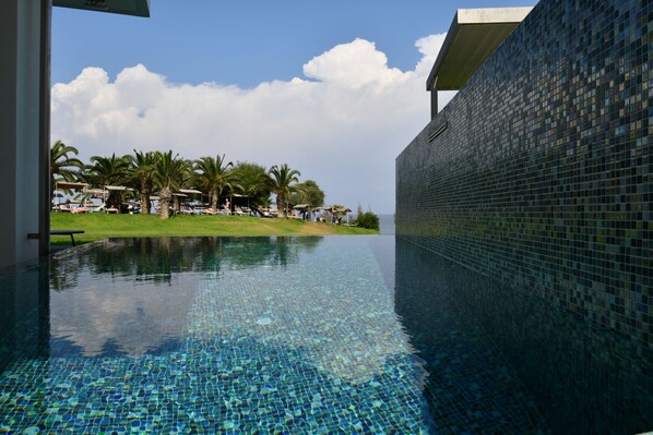 Just a 1-minute walk away from the villa is Vrysoudia Beach and 3-minute walk away is Serena Bay Beach perfect for spending the day and having a few cocktails!