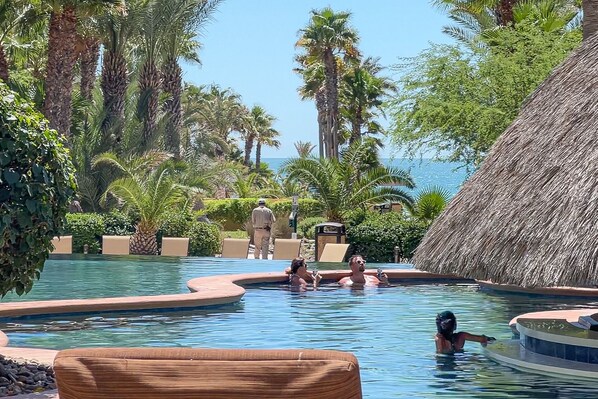 Eines der schönsten Resorts in der Gegend, direkt am besten Strand von Rocky Point. Nur einen kurzen Spaziergang vom Wasser entfernt. Wir bieten 5 Pools, Holzkohlegrillbereiche, wunderschöne Gärten, eine Aqua-Bar, einen Minigolfplatz, eine exklusive Tiefgarage und einen 24-Stunden-Sicherheitsdienst. Direkt neben Sonoran Sun finden Sie ein Restaurant und einen Supermarkt.