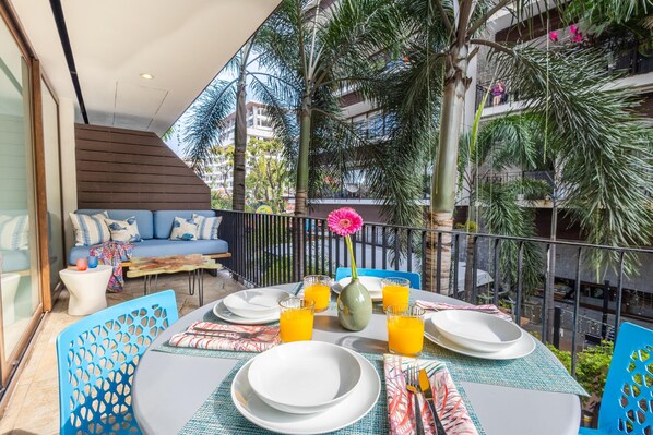 Unit 101 has been recently updated and is in pristine condition with a beautiful outdoor terrace and custom Parota wood furnishings. From the first moment you walk in the door there is a welcoming feeling with bright colors and open concept.