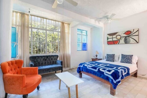 This riverside studio offers a delightful escape right by the Cuale River. Situated on the ground floor equipped with modern comforts like a Netflix, air conditioning, and fans, your comfort is ensured. Immerse yourself in the vibrant culture as you're merely a short stroll, just three blocks away, from the bustling array of bars, restaurants, and the sun-kissed beach. Plus, you'll have access to a shared rooftop terrace, adding an extra touch of charm to your Puerto Vallarta experience.