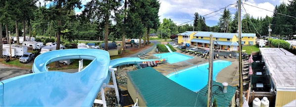 Please note that all of our guests here at the Riverside Resort get full inclusive access and use of our seasonal pool, waterslide, and mini golf during their stay.