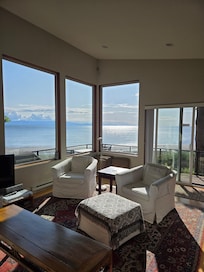 Einfach wundervoll, schon beim ersten Öffnen der Haustür ein unglaublicher Blick direkt auf das Meer ... wow ... Ein tolles Beachhause in erster Linie mit unmittelbarer Strandnähe (ca. 10 m). Beachfeuer am Abend, Frühstücken am Morgen auf der Terrasse mit anschl. Strandspaziergang, Beobachten von Seals, Weisskopfseeadlern und mehr. Einfach atemberaubend! Ein großer Luxus, "vom Bett ins Meer zu fallen".