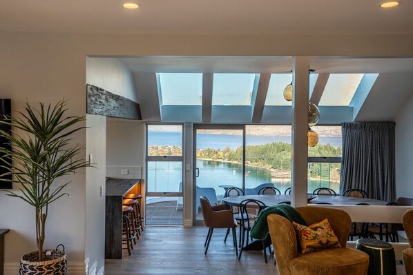 Guests will love the multiple outdoor living spaces. The large lake-facing balcony will surely impress with its never-ending views and there is a sheltered area at the back with an outdoor fireplace, dining table for 12 and BBQ. Indulge in your own private spa pool for the perfect après ski while gazing out to the gorgeous mountains. The games room on the lower level opens out to a large flat lawn, which is wonderful for children to be able to run around.