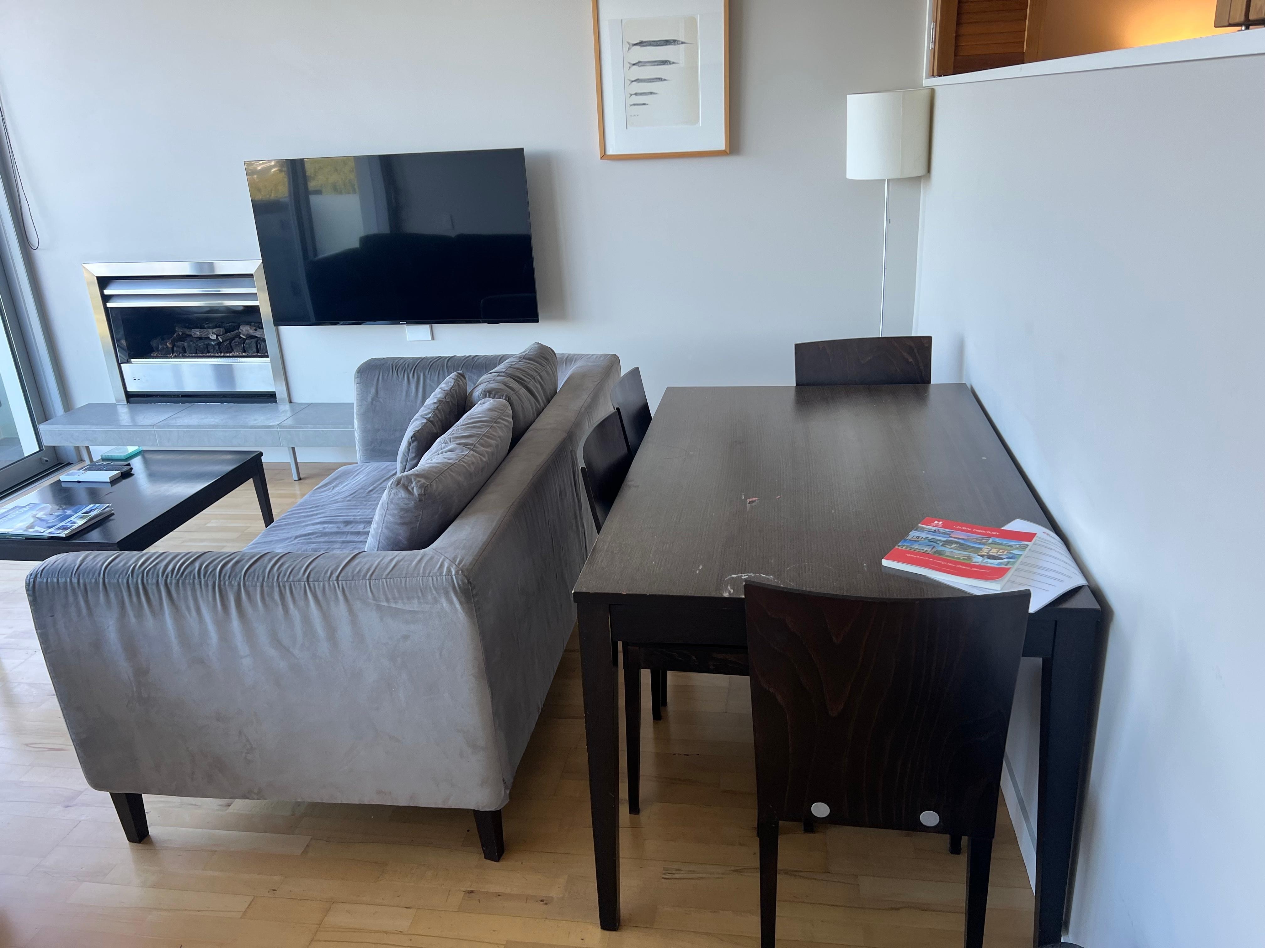WOW - the pictures that are shown are not at ALL like what you get (and not in a good way!) Old tired furniture that was really scratched up, water stained and disfigured; water damaged hardwood floors, the dining table did not even allow for us to sit around it - it was smashed into one of the 2 mismatching and saggy sofas; the “provided continental breakfast”was a joke - tiny amount of coffee (4 pods for 3 people?!), a TINY jar of dry cereal that was poured out of who knows what into a mason jar and 8 slices of white bread. After I complained about the condition of the place, they did provide a 10% refund, but you should know going in that the listed photos do NOT represent accurately what you are getting. In addition, the hotel is on the only main road into the city so it is constantly busy and noisy with traffic and walking onto the city is not an easy task.