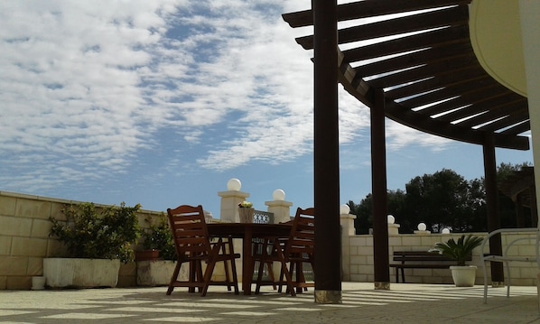 Neu gebautes Haus, nur 100 Meter vom wunderschönen Meer von Salento entfernt, im Erdgeschoss, 2 Schlafzimmer, 1 Badezimmer, Küche und Esszimmer, Klimaanlage, TV, Außenduschen, Moskitonetze, Waschmaschine, großer Außenbereich mit Tischen und Stühle für Mahlzeiten im Freien. Kostenlose geschlossene Parkplätze vor Ort. Straße für den Verkehr gesperrt, ruhig und bequem. Ganz in der Nähe befinden sich nur 100 m Supermärkte, Geschäfte aller Art, Bars, Ärztehäuser, Unterhaltungsmöglichkeiten bei Nacht und tagsüber, Pizzerien, ein großer Spielplatz und Radweg, eine Bushaltestelle sowie ein Fahrrad- und Rollerverleih. Es hat einen unabhängigen Eingang. Tiere sind willkommen. Haus für Behinderte völlig zugänglich.