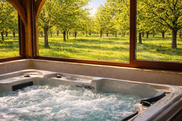 Le propriétaire est particulièrement aimable et nous avons eu , avec les enfants et petits enfants , une vie commentée de la ferme et du verger avec la cueillette des prunes .