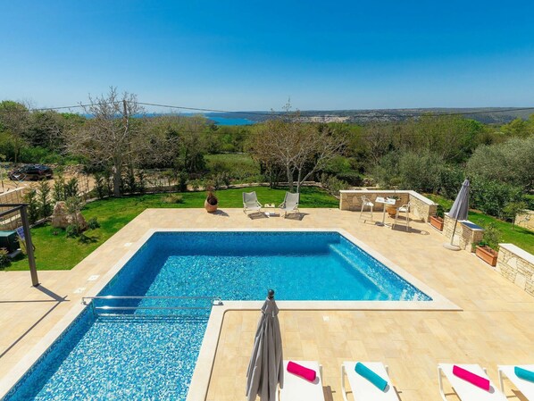 Diese Villa in Rasa bietet einen Privatpool und eine Küche