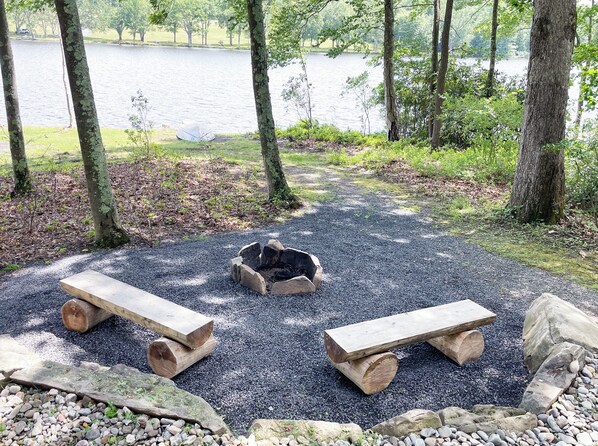 Charming Lake Front Log Cabin with Fire Pit in the Poconos