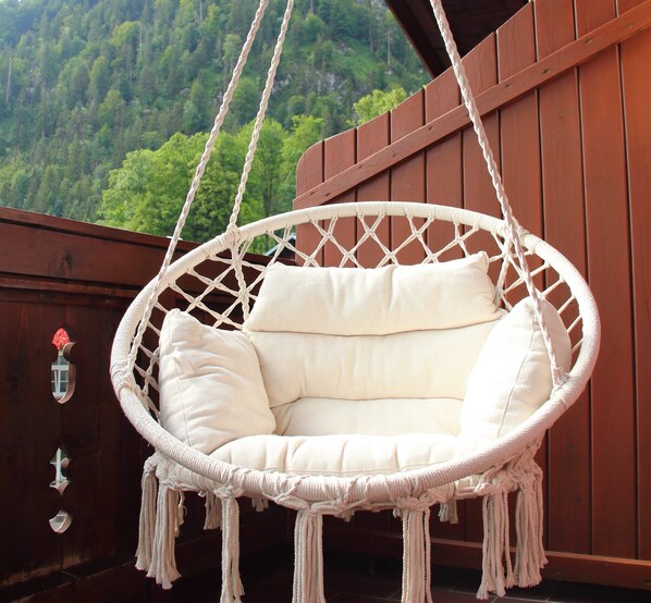 Freundliche Drei-Raum-Ferienwohnung mit zwei Bädern. Ost-Balkon mit Morgensonne und Bergblick. 2. Etage.